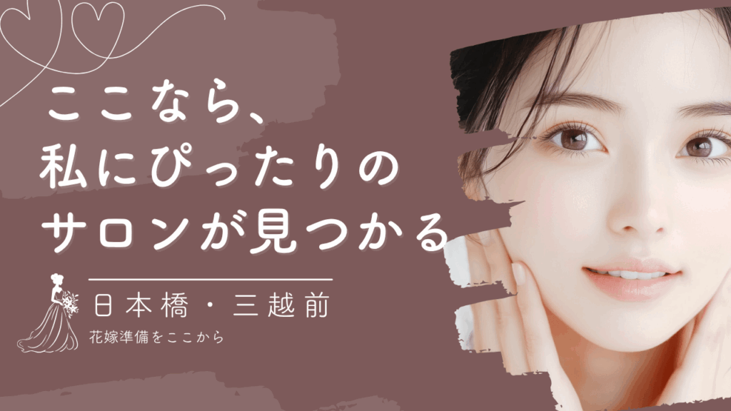 結婚式の準備、仕事、家のこと...気づけば毎日があっという間。 それでも「当日は、自分史上いちばん綺麗な私でいたい」と願う花嫁さんは多いはずです。 そんな忙しい花嫁に選ばれているのが、日本橋・三越前エリアのブライダルエステ。 落ち着いた雰囲気...